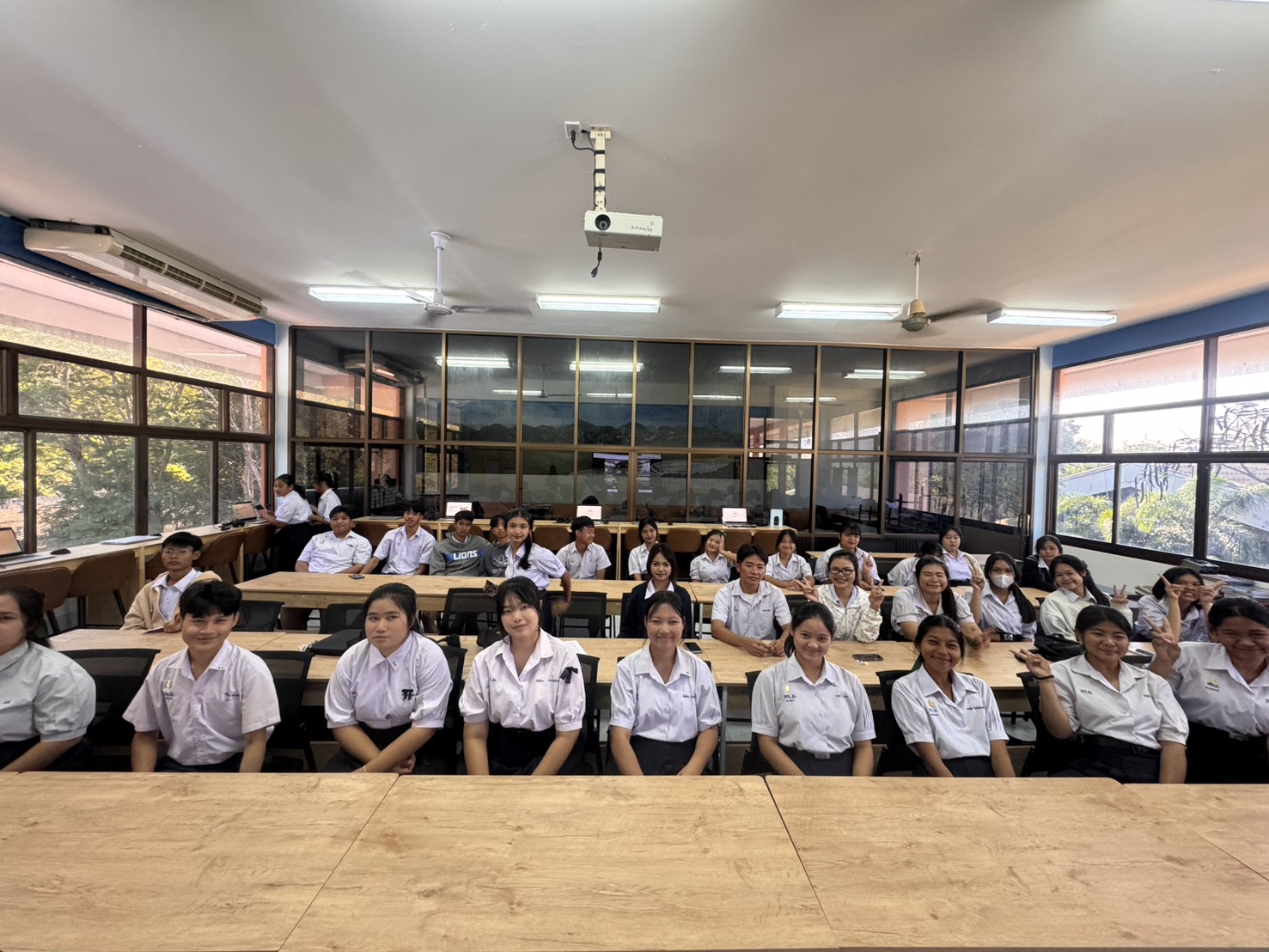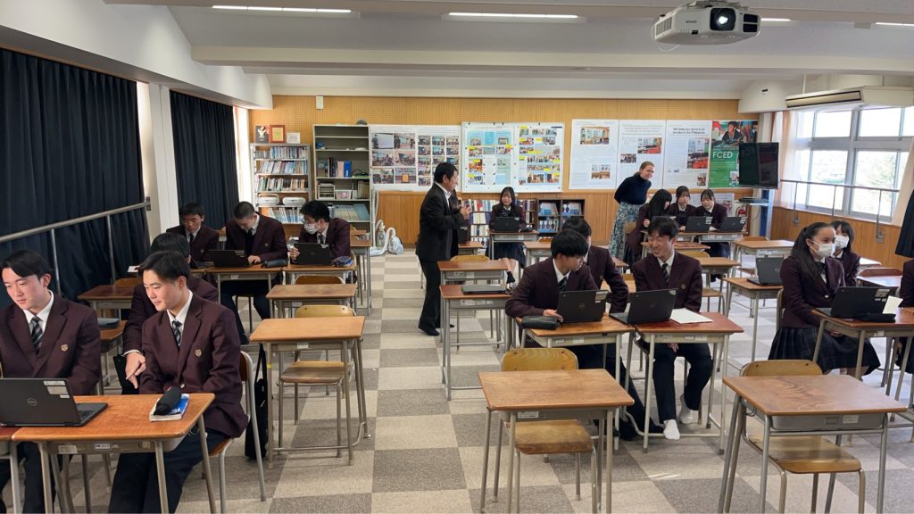 2025年12月16日 / 最終更新日 : 2025年12月16日 丸岡高校 お知らせ サイヨークマニカン高校(タイ)とのオンライン交流 12月16日(火)3時間目に、タイのサイヨークマニカン高校の生徒とみらい共創コース3年2組文系の生徒が初めてオンライン交流を行いました。学校紹介・互いの国のポップカルチャーについて話し合いました。お互いに会話を楽しみながら、有意義な時間を過ごすことができました。来月は、1年生で交流をしましょうという話で交流を閉じました。 FacebooktwitterHatenaPocketCopy