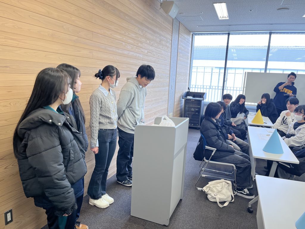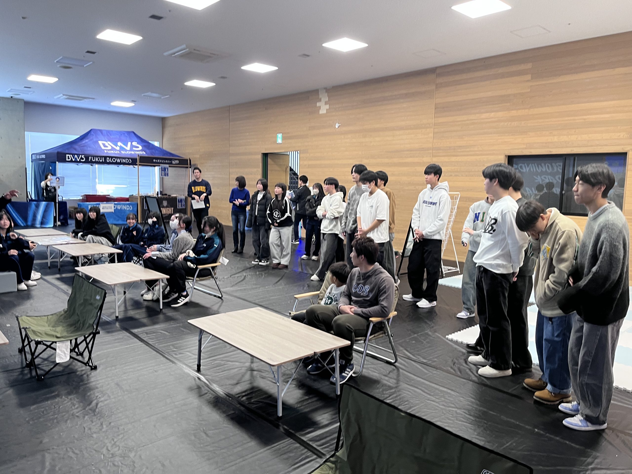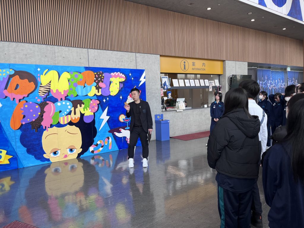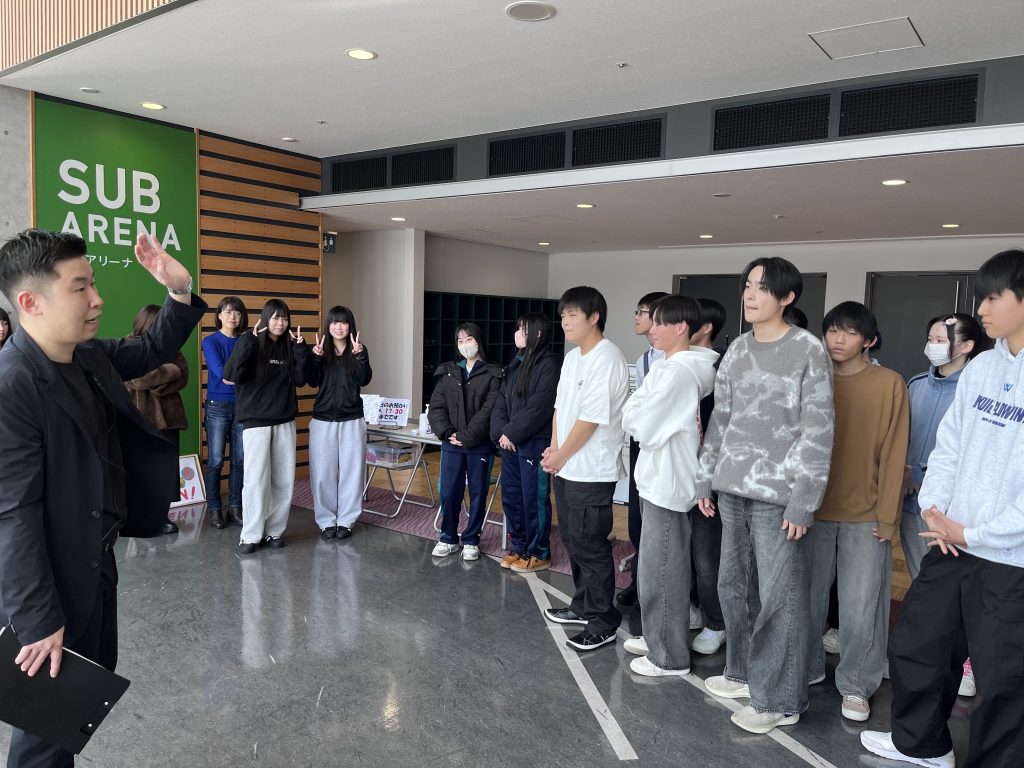 今回は春江中学校生もお迎えして、実際にブローウィンズが集客のために行なっている取り組み、スタジアムの裏側見学、グループワークを行ったのち試合観戦しました。