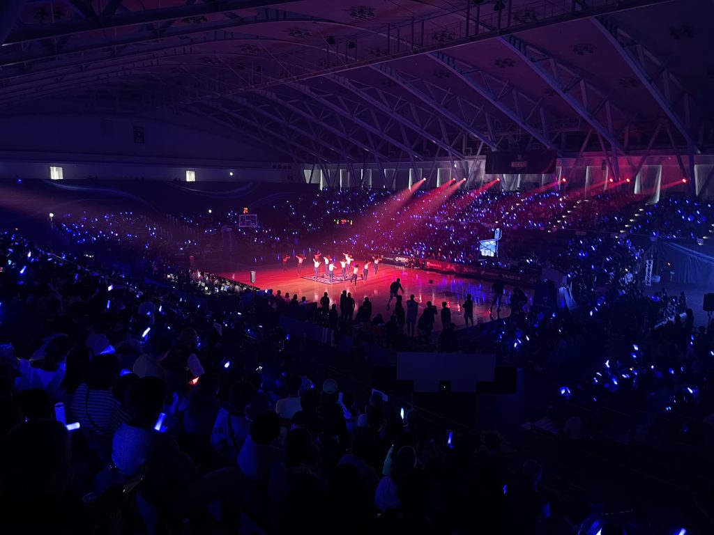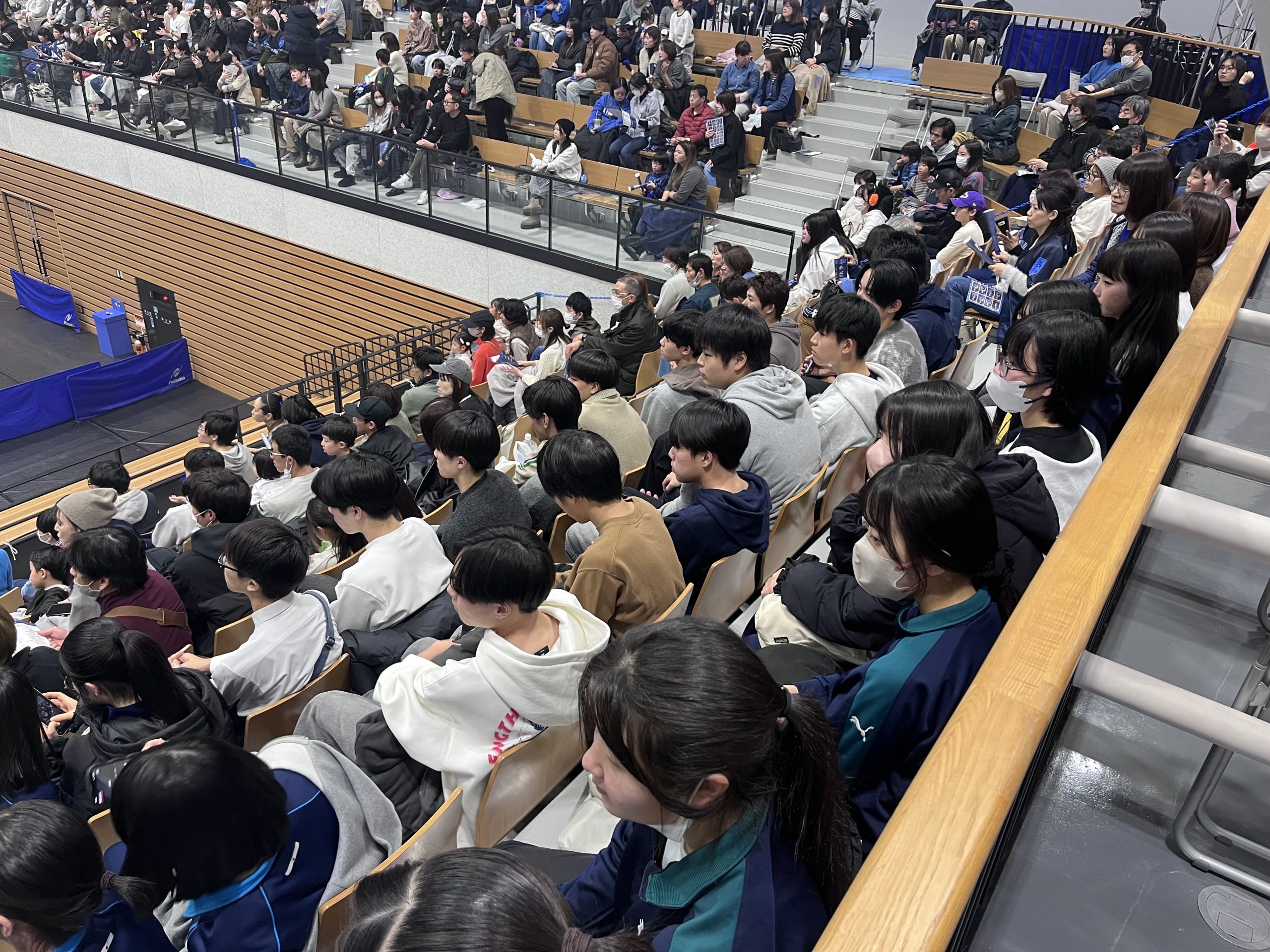 普段できない経験に生徒は大興奮。ブローウィンズのパートナーとしてかけがえのない経験ができました。試合は3ポイントシュートが効果的に決まり、ダンクシュートが炸裂するなど接戦ののち首位の福島に勝利。白熱した応援ができました。