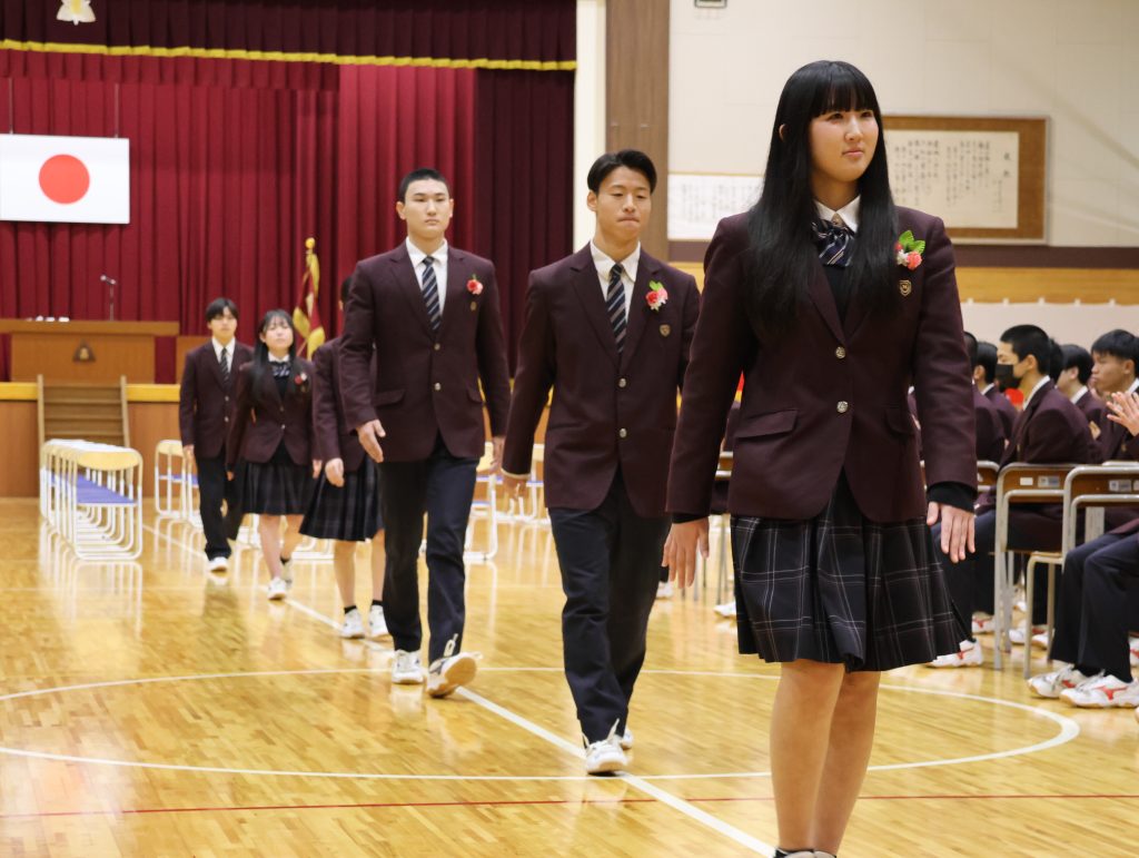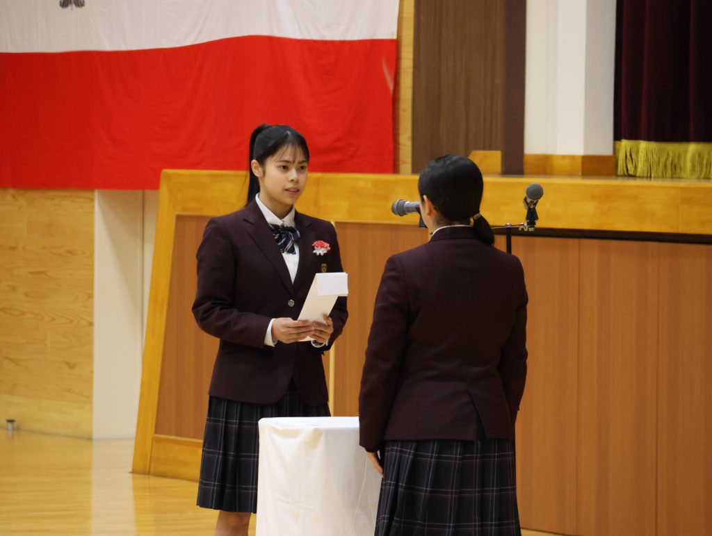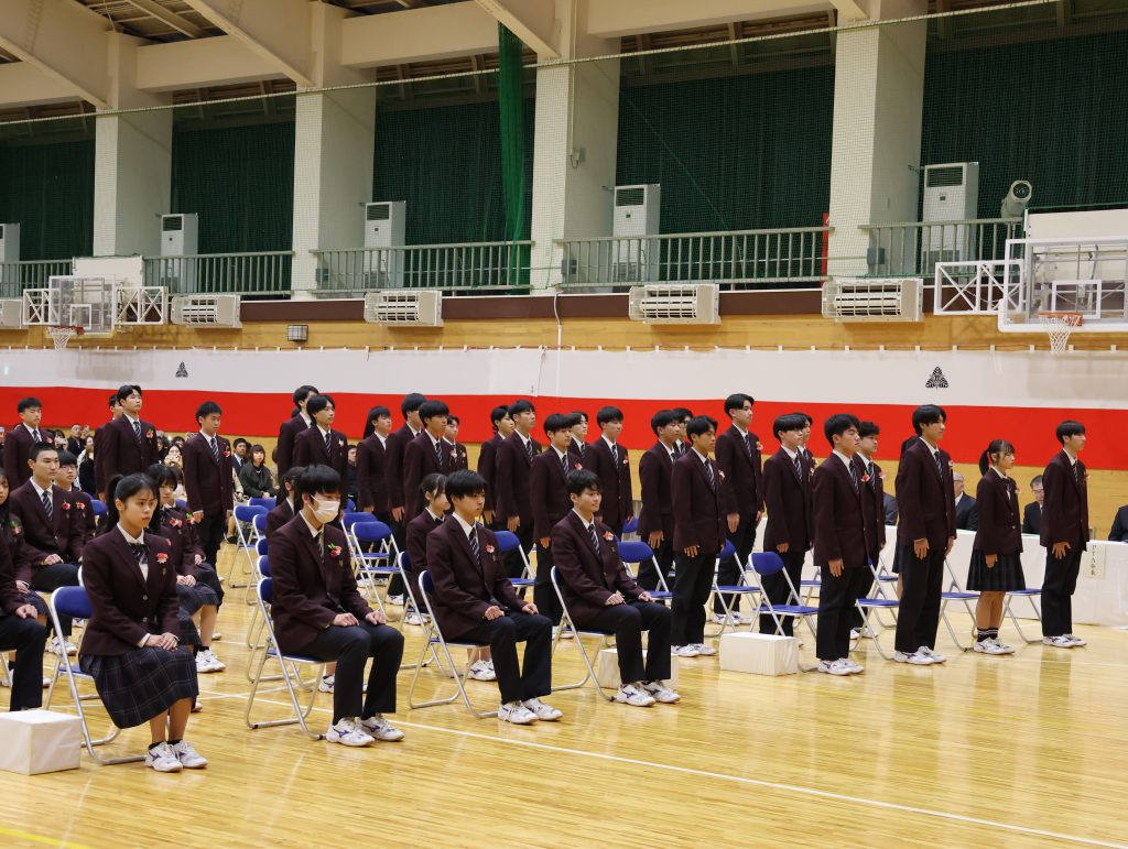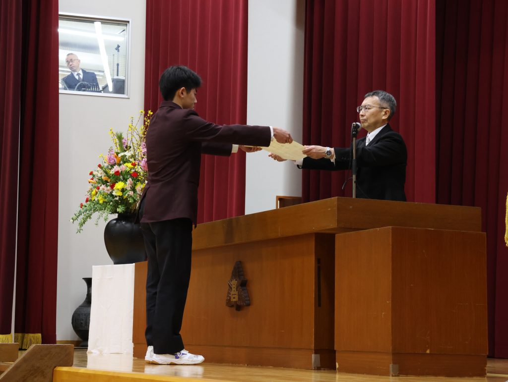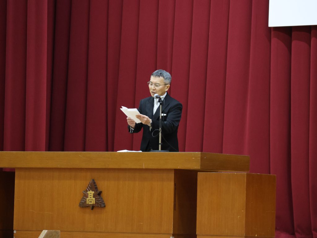学校長からは、「経験に基づいた『思考力』・自分に責任を持つ『行動力』・思考と行動に取り入れる『柔軟性』の3つを心の羅針盤にして、自立した一人の人間として、日本や世界の未来を切り拓いていってください。」と式辞がありました。