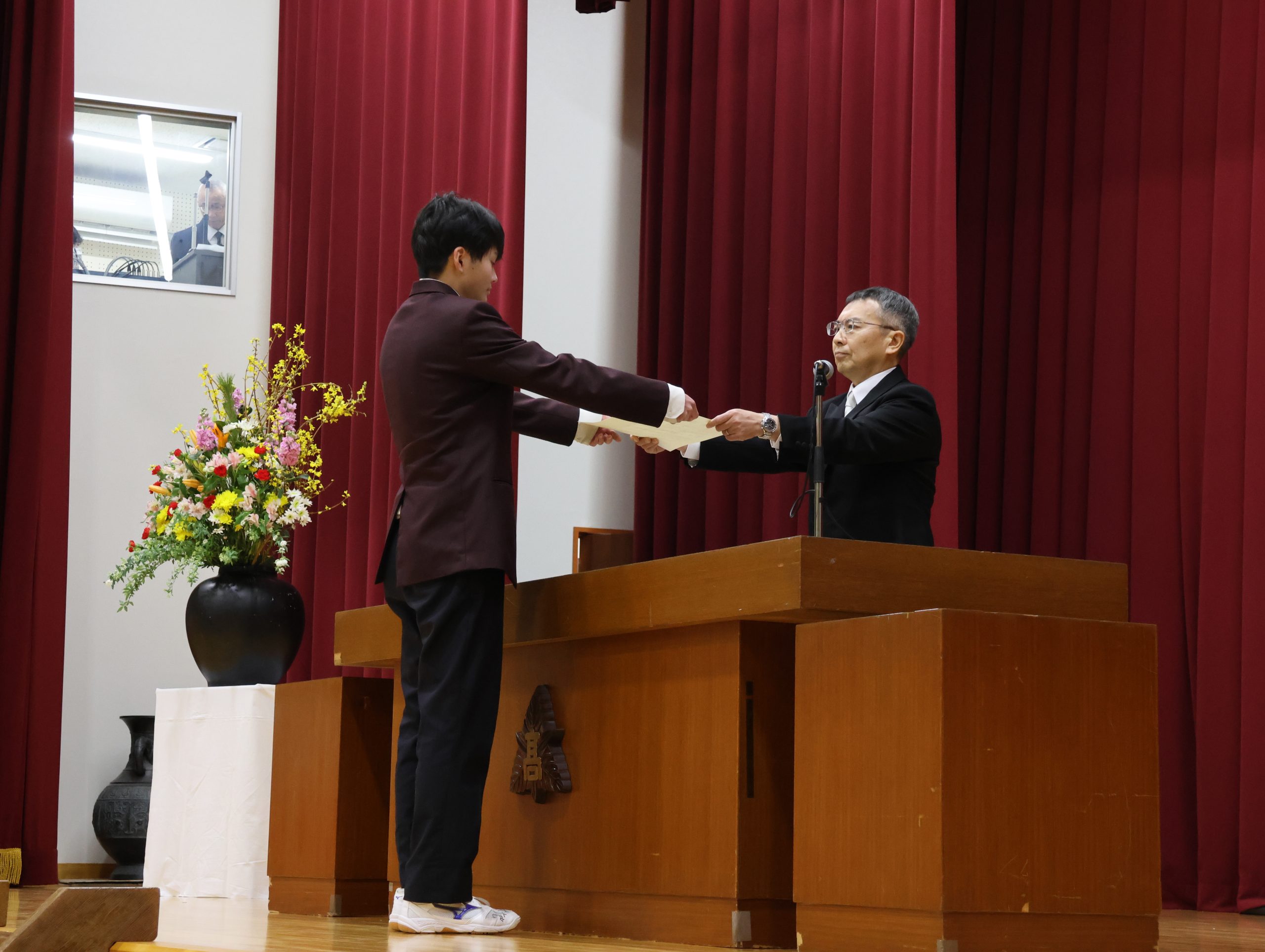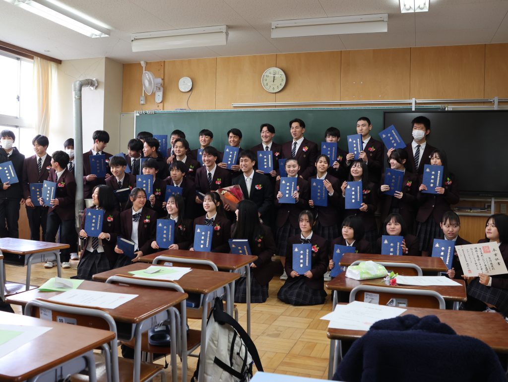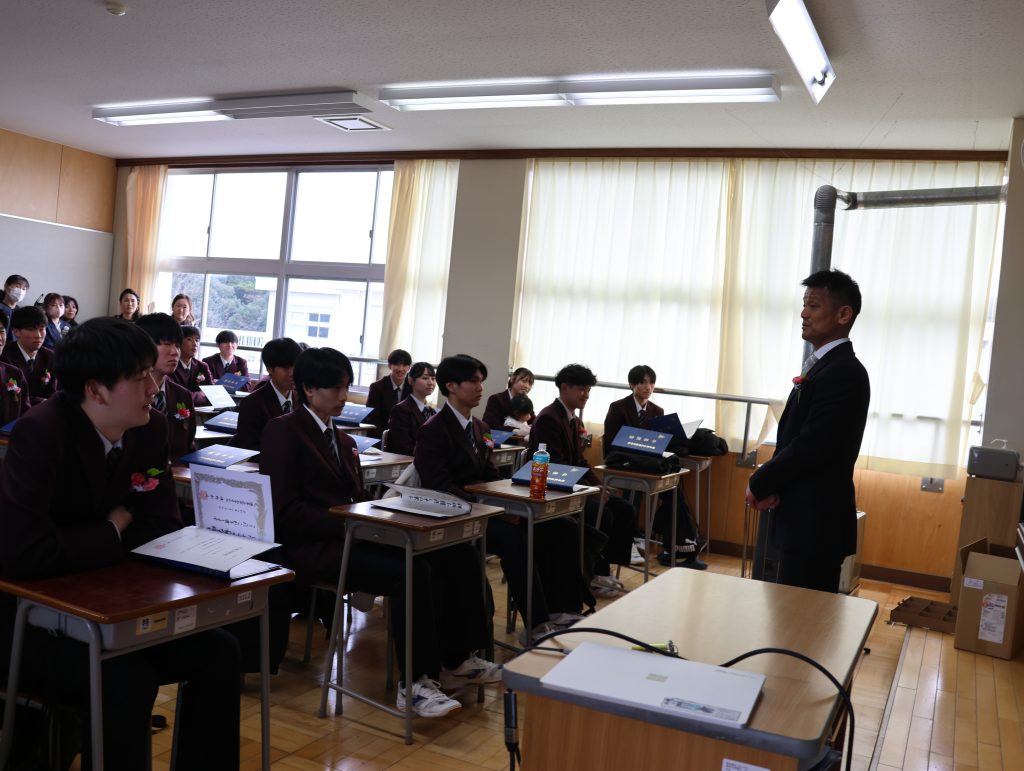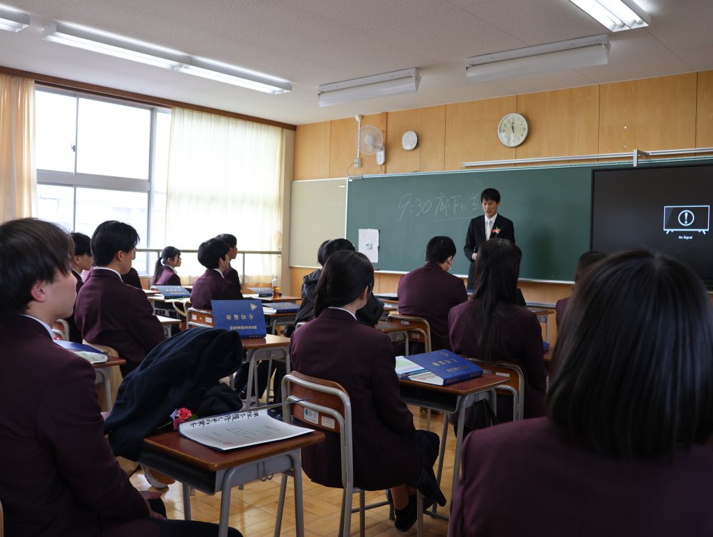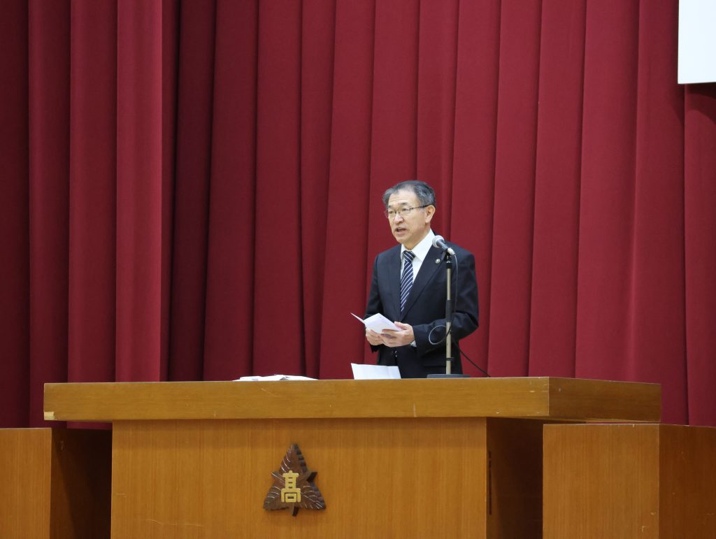 学校長からは、「経験に基づいた『思考力』・自分に責任を持つ『行動力』・思考と行動に取り入れる『柔軟性』の3つを心の羅針盤にして、自立した一人の人間として、日本や世界の未来を切り拓いていってください。」と式辞がありました。