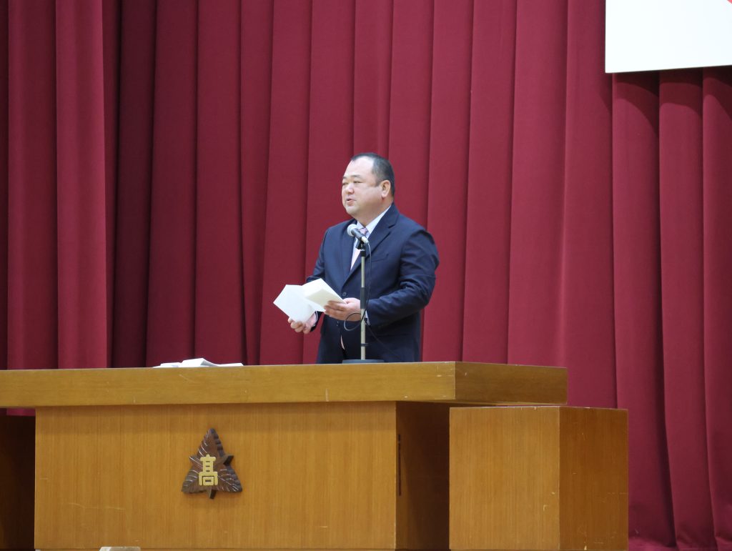 また、竹内PTA会長様より、「学校祭で、生徒たちとPTAが一緒になって取り組んだ花火は、一生の思い出です。大きな夢を持って、その夢を決意に変えて、自分の未来に胸を張って突き進んでください。」と祝辞をいただきました。