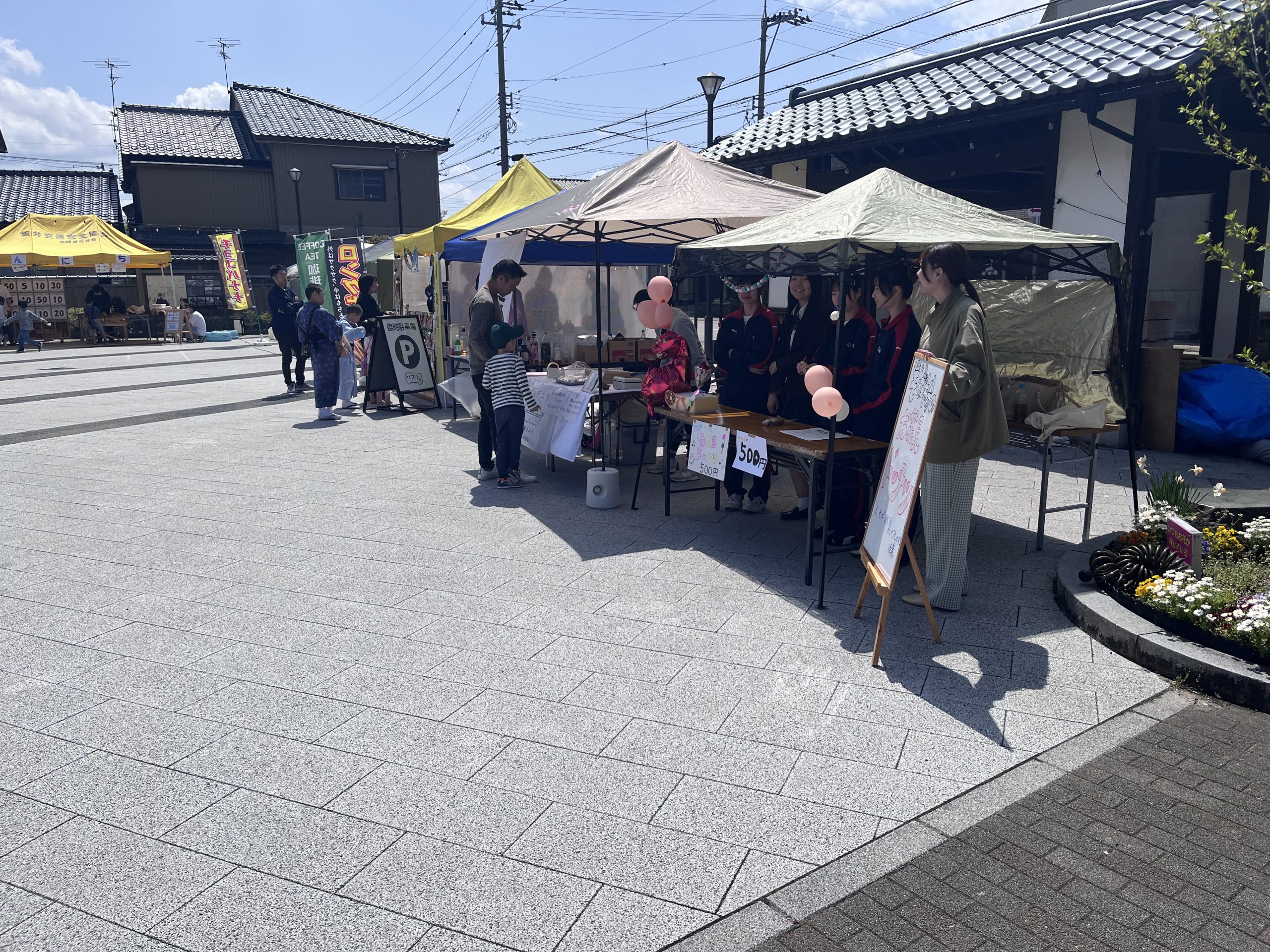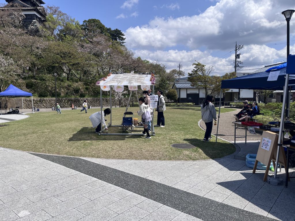 4月11、12日は丸岡城お天守前広場にてお天守フェスが行われ、丸岡高校生は子ども縁日や自分たちで考えた丸岡産のそば粉を使ったドーナツを販売しました。
