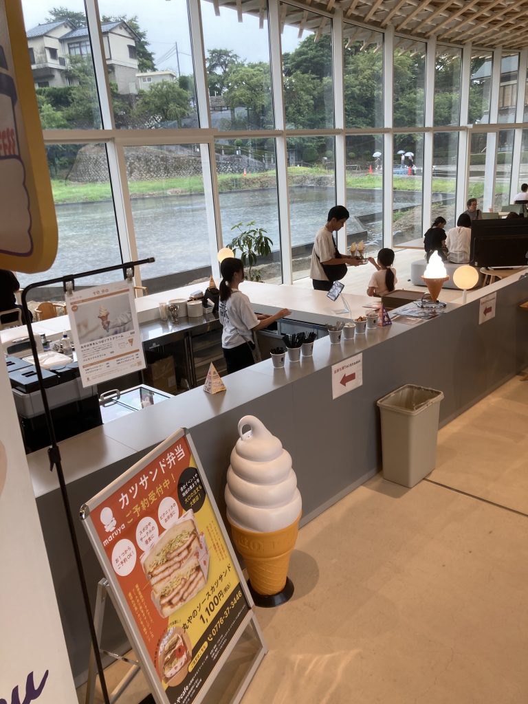地域の人気のカフェで、お盆のシーズンということもあり、観光客でいっぱいのなか、名物の商品を提供します。