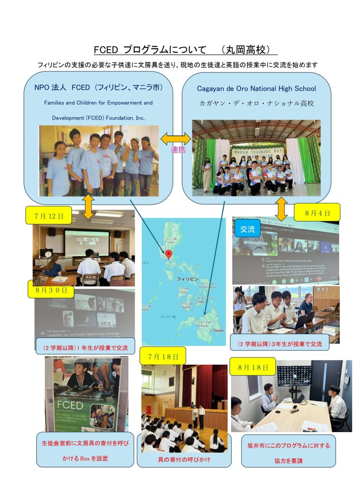 丸岡高校生徒会はフィリピンの支援を必要としている子供たちのために、未使用の文房具をあつめ、彼らに届けます。