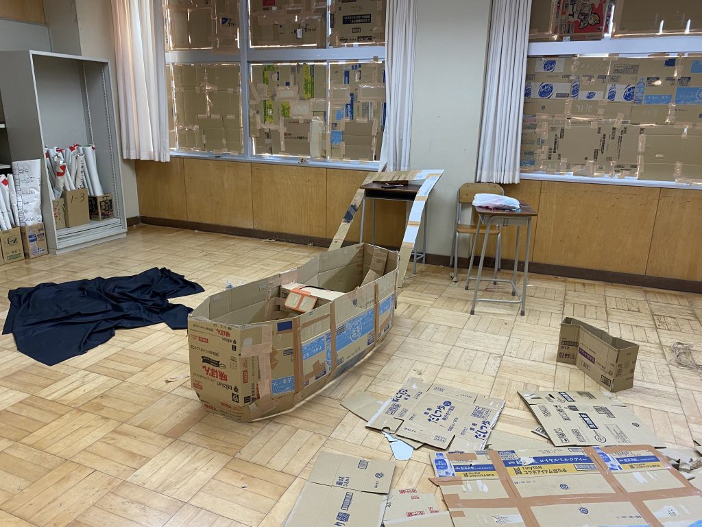 雨で順延していた、つくりものの足場の組立も行われました。