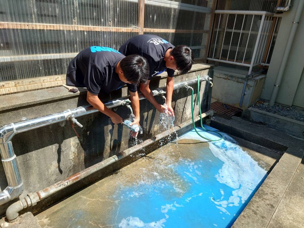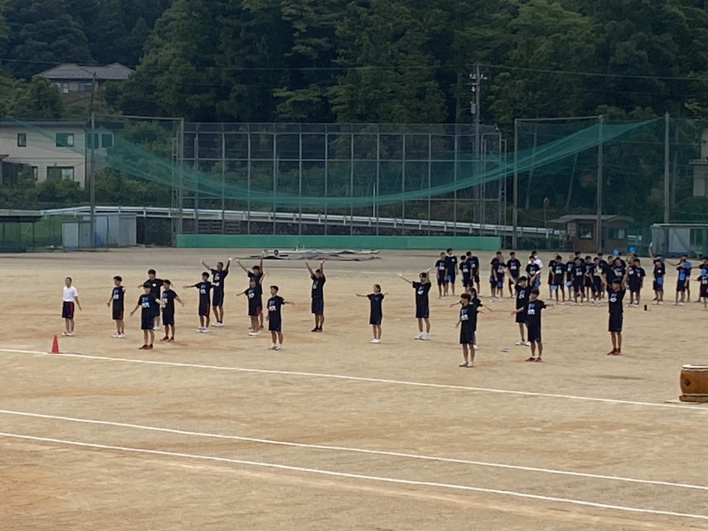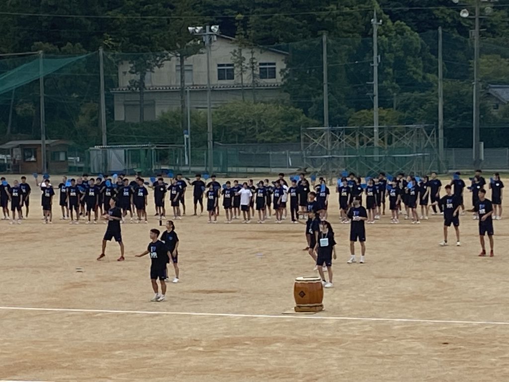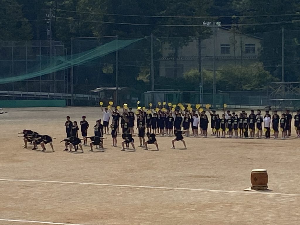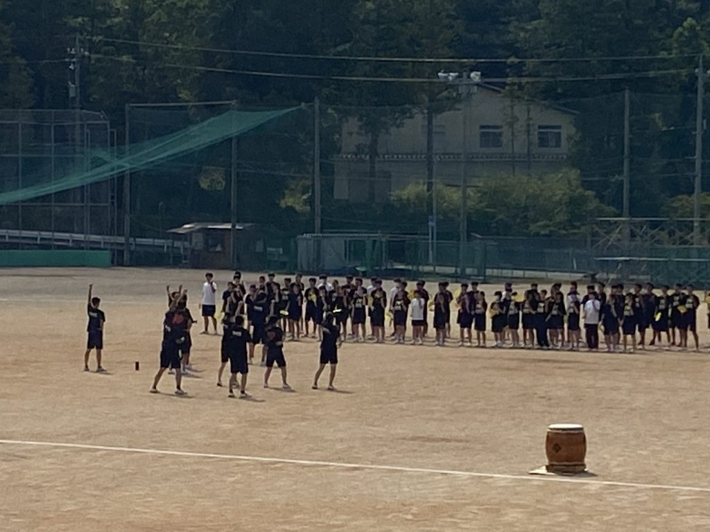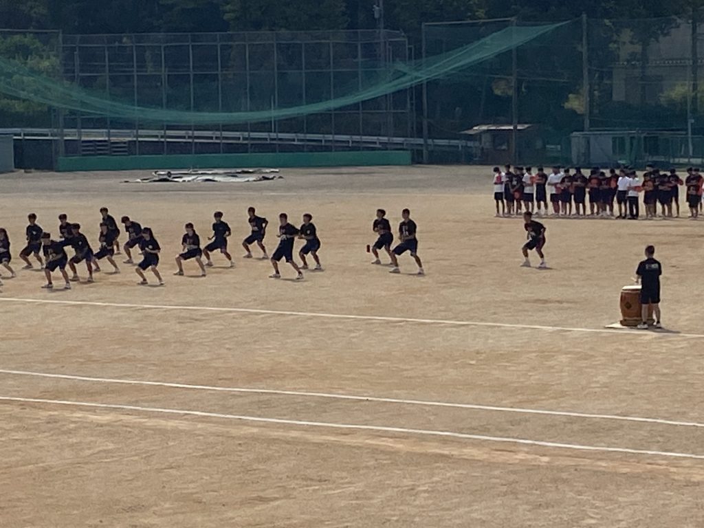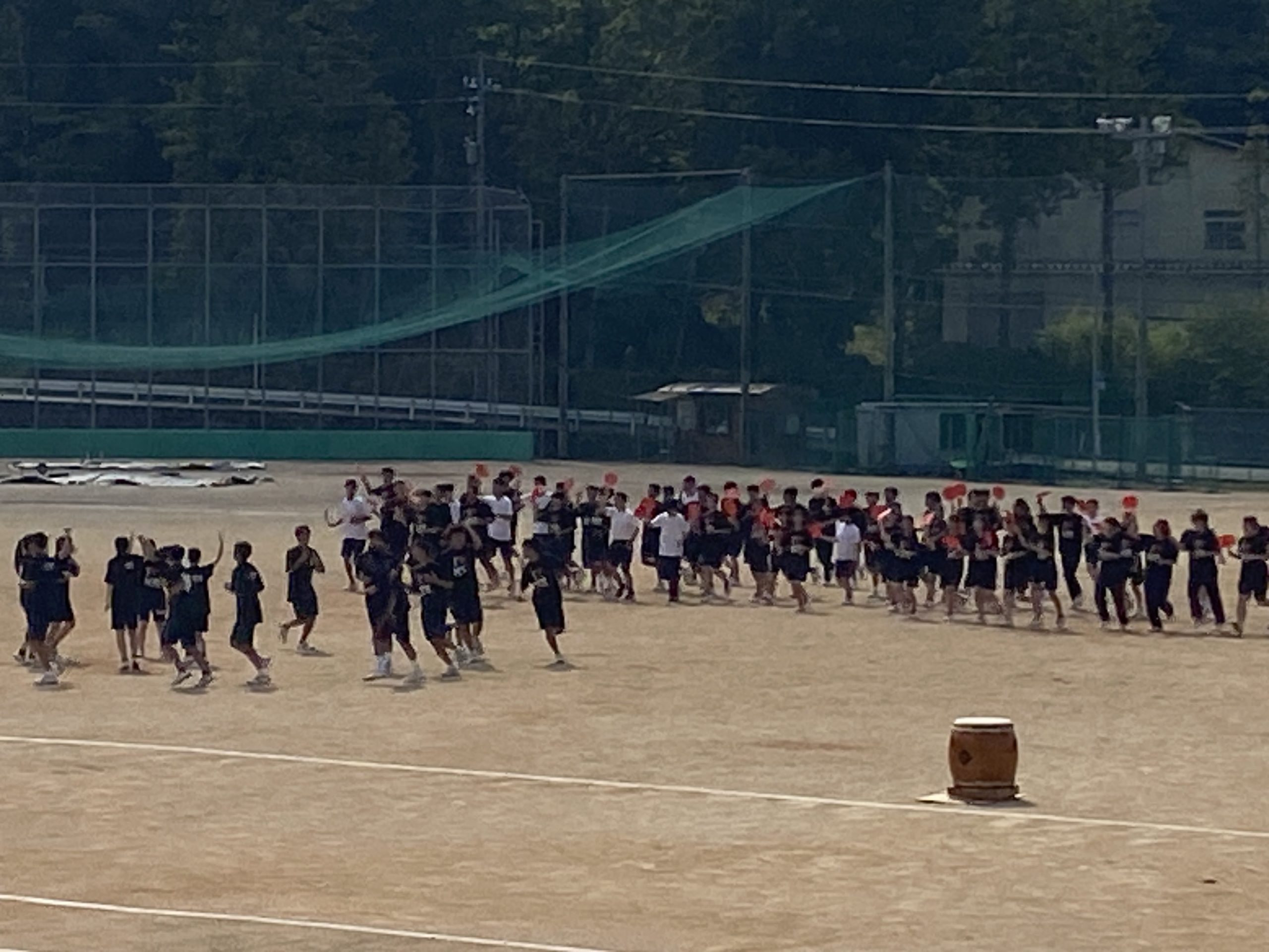 全体応援練習も、グラウンドで行い、動きやバランスのチェックに余念がありません。
