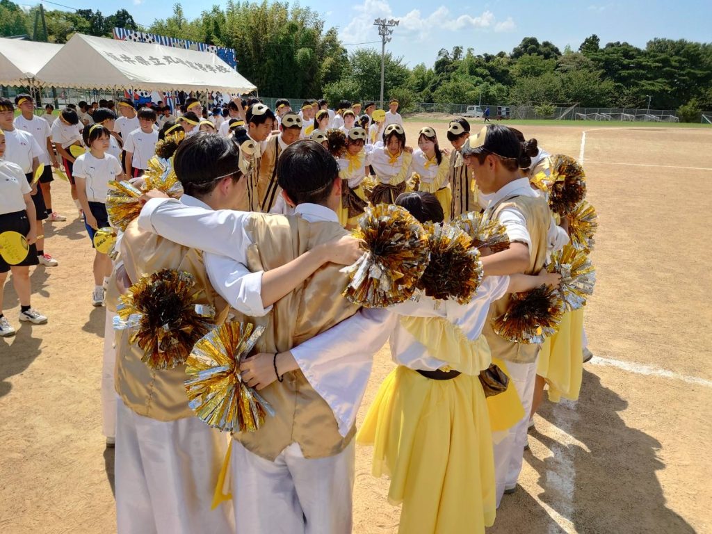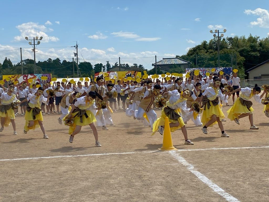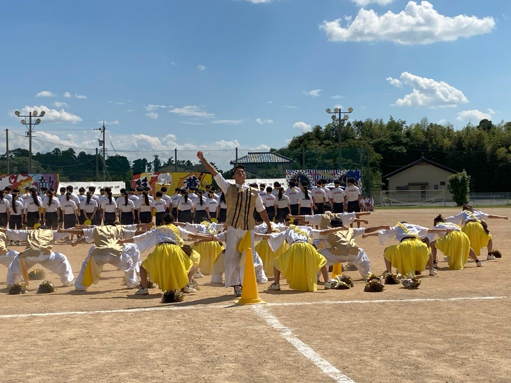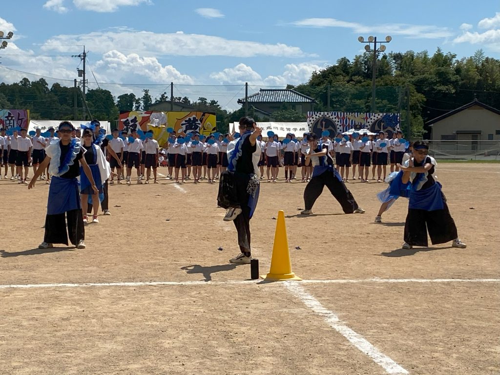 気合いを入れて、全員で校歌を熱唱し、パフォーマンスで各テーマを表現します。