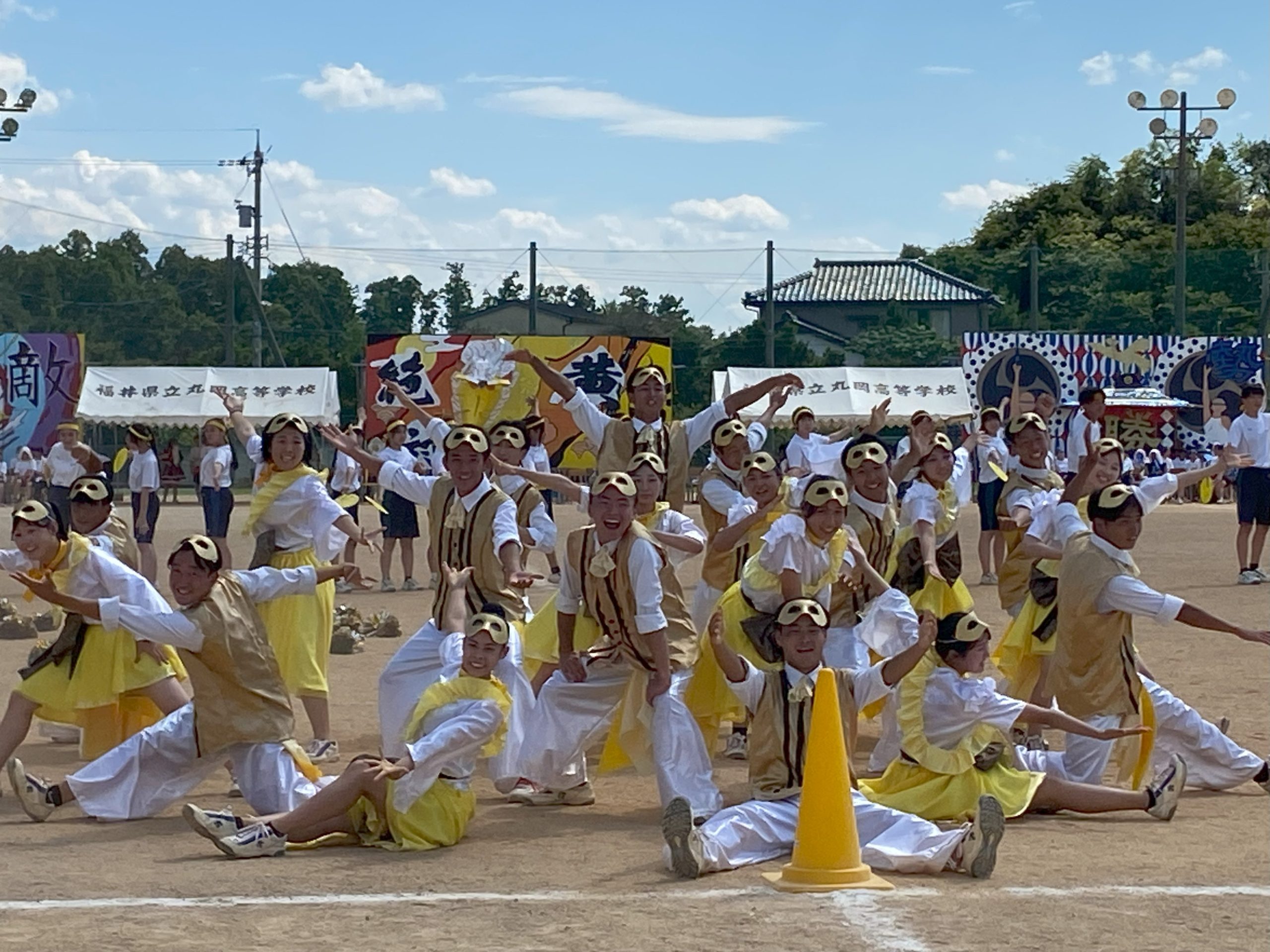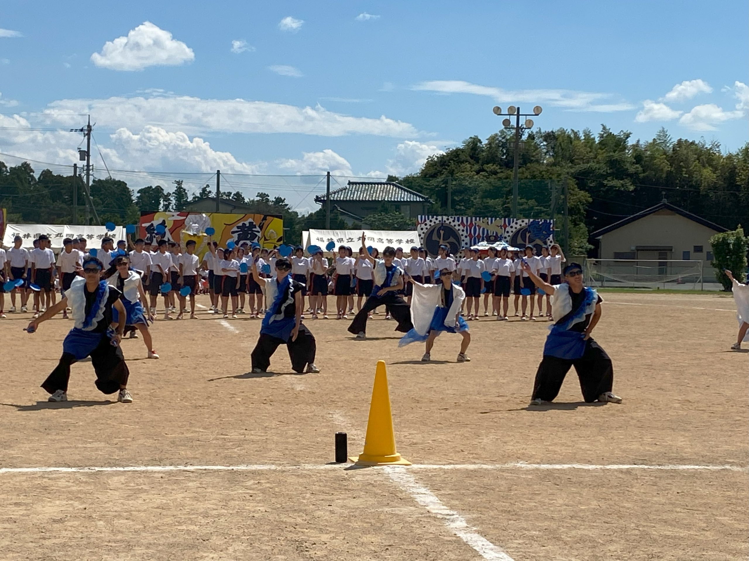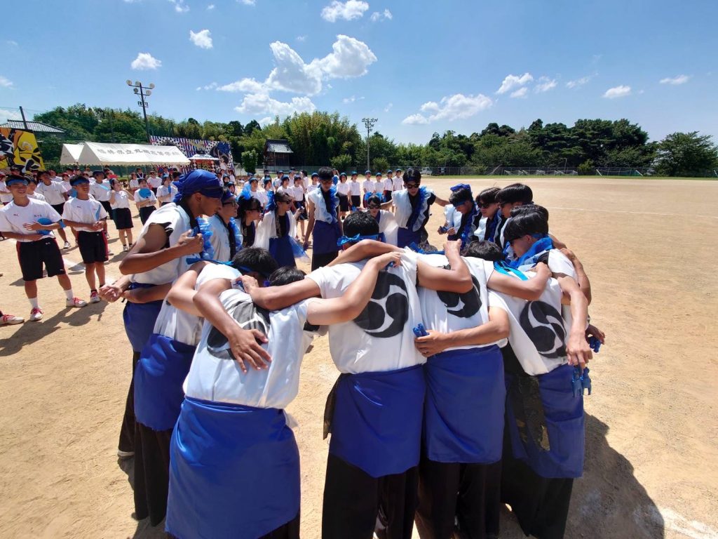 気合いを入れて、全員で校歌を熱唱し、パフォーマンスで各テーマを表現します。