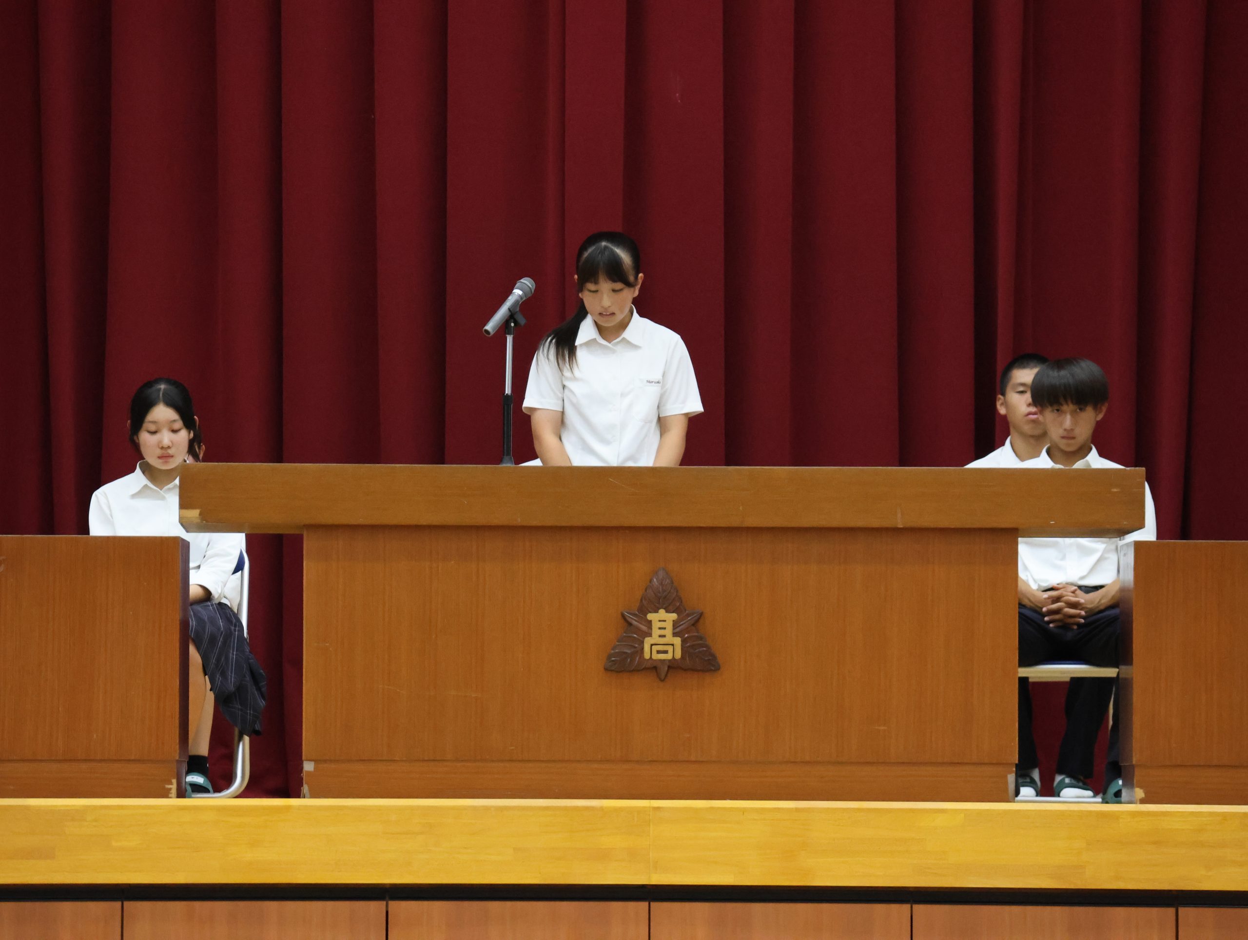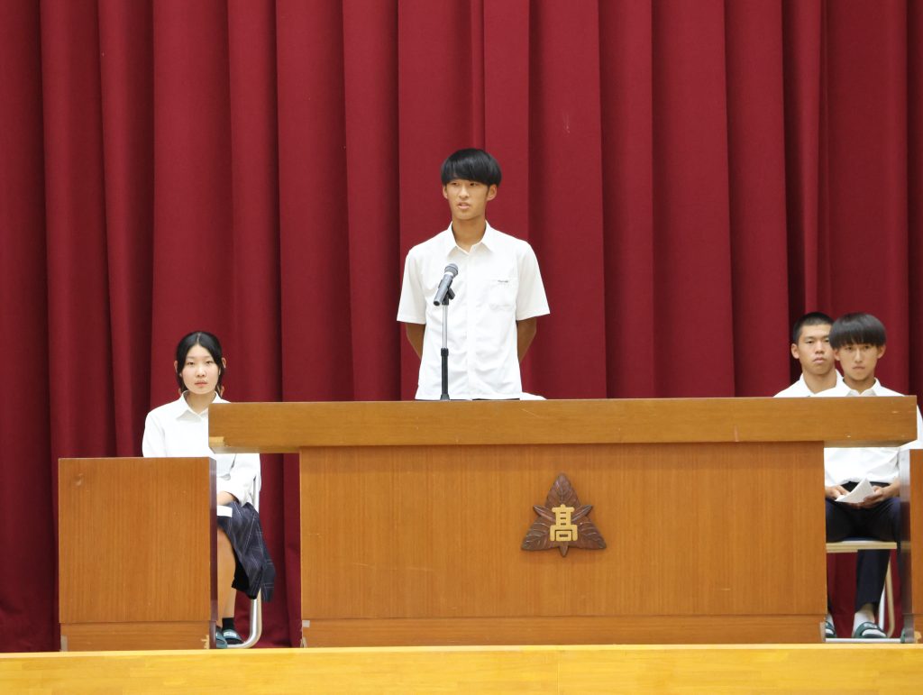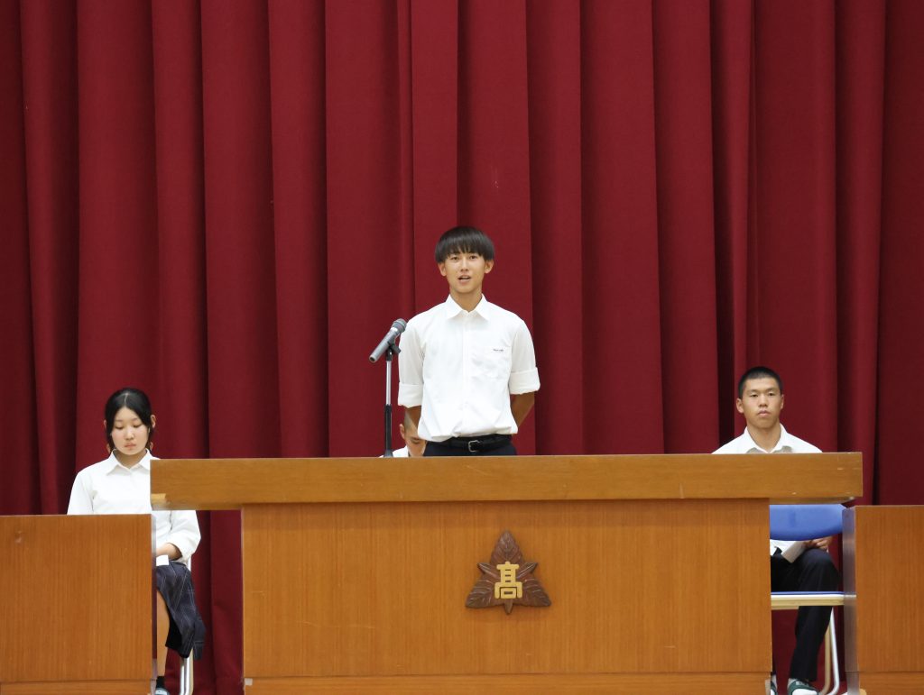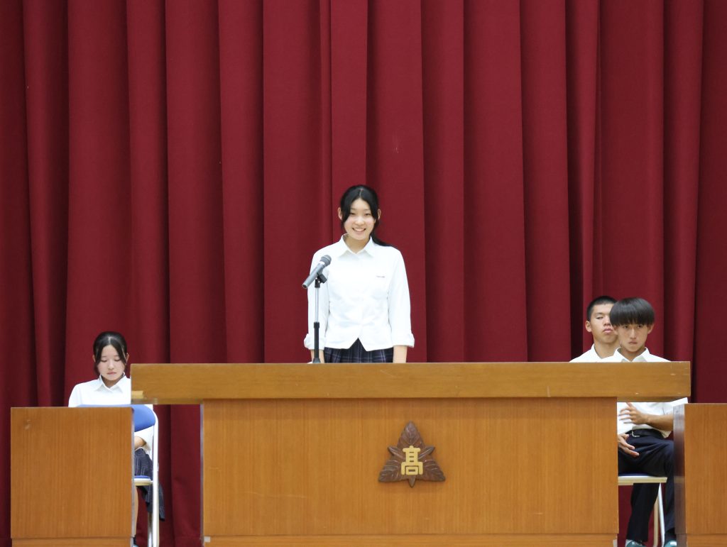 2025年9月11日 / 最終更新日 : 2025年9月11日 丸岡高校 お知らせ 後期生徒会役員 立会演説会 9月9日(火)、10月からの後期に向けて、生徒会役員立候補者の立会演説会を行いました。 2年生の5名の生徒が、会長、副会長、書記、会計に名乗りをあげました。 後期は、前期と比べると大きな行事はありませんが、だからこそ、生徒会が企画をして、学校生活をより良く、楽しいものにしたいと、力強く語ってくれました。 FacebooktwitterHatenaPocketCopy