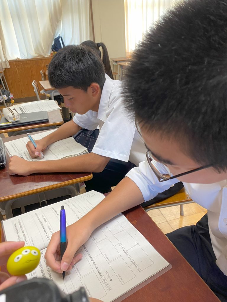 いよいよ、2学期が始まり、1年生は1学期の探究活動について、お互いにシェアし、振り返りました。