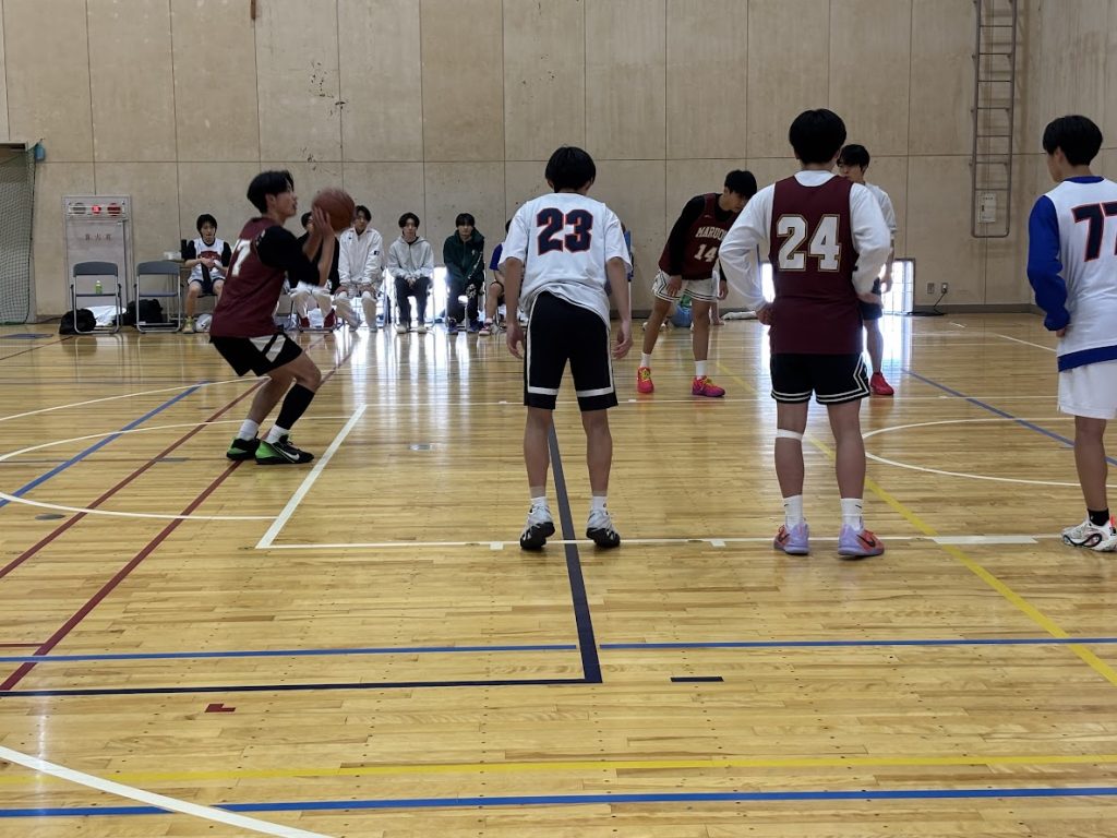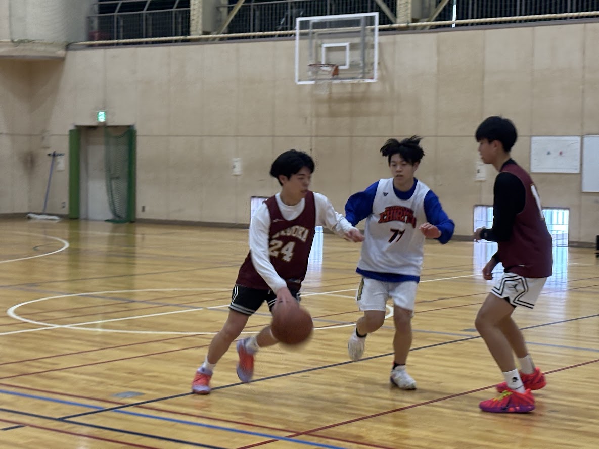 3月20日(金)、石川県の小松市立高校、寺井高校との練習試合に参加しました。チームの課題である運動量や攻守の切り替えについては少しずつ改善できており、速攻の場面が以前より増えました。ドライブやパスの判断、ハーフコートオフェンスの動きはまだ足りていない所もあったため、今後も精進していきたいです。